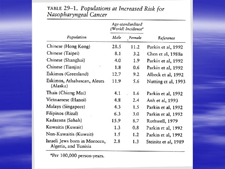 Human T-cell Lymphotropic Virus Type I § RNA virus § Prevalent in 5 -15% of adults in southwestern Japan, the Caribbean islands, South America, Central Africa, and parts of the Pacific Islands § Transmitted by (1) breast feeding, (2) blood transfusion, and (3) sexual intercourse § Usually acquired in infancy § Immortalizes CD 4 -positive T cells § Possible mechanisms of oncogenesis: Tax protein – Activates transcription factors – Suppresses transcriptional inhibitors – Suppresses cell-cycle inhibitors § Associated with Adult T-cell Leukemia