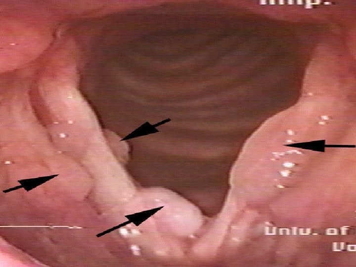 Tumors of Larynx: I. Non malignant tumors: • Vocal cord nodule: Site: True vocal cord. Etiology: heavy smoker (chronic irritation), chronic sound abuse (singer's nodule). Gross: less than 0. 5 cm hemispherical protrusion. Mic: Squamous epithelium & fibrous stroma.