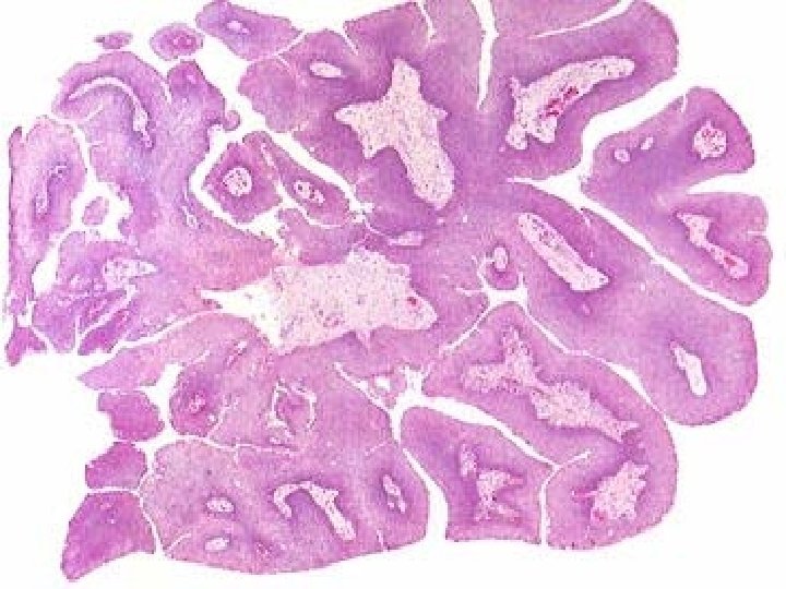 • Laryngeal Papilloma: Site: true vocal cord. Etiology: Human Papilloma virus 6, 11. Gross: small raspberry (rare more than 1 cm). Mic: Finger like projections with fibrovascular core & cover by stratified squamous epithelium.