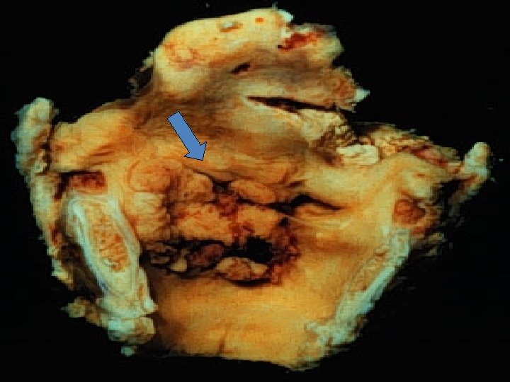 Types according to the sites: 1. Glottic carcinoma: (on the vocal cord), 60 -70% of cases. 2. supraglottic carcinoma: 25%. 3. subglottic less than 5% of cases. Gross: Wrinkled plaques, ulcerating, fungating mass. Mic: Glottic carcinomas are well to moderate differentiated squamous cell carcinoma.