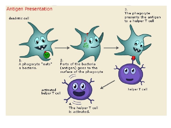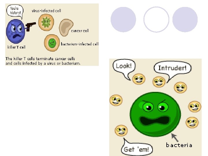 HOST DEFENSES AGAINST INFECTIOUS DISEASES l Nonspecific mechanisms are the body’s primary defense against disease - anatomical barriers, physiological deterrents and presence of normal flora (skin, low p. H and high salinity) ¡ ¡ ¡ l Specific mechanisms: immunity ¡ ¡ ¡ l Anatomical barriers: nasal opening, skull, vertebral column, skin Physiological deterrents: tears, vaginal secretions, saliva, blood, sweat, and some tissue fluids Normal flora: successfully compete with pathogens Cell-mediated: uses T-cells; helper cells and killer cells; activate B cells Antibody-mediated: uses B-cells Both are lympatic cells Vaccination: produces immunity