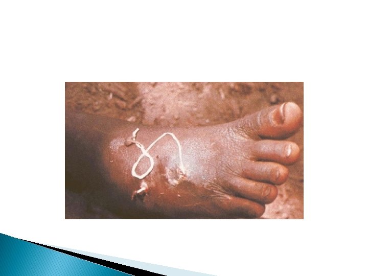 Schistosomiasis (bilhariziasis) caused by: � Schistosoma hematobium give urinary diseases. � Schistosoma mansoni and schistosoma japanicum give liver and intestinal disease. � � Schistosomiasis is transmitted by freshwater snails that live in the slowmoving water. Infectious schistosome is the larva (cercariae). Larvae (cercariae) penetrate human skin, migrate through the vasculature, to the lungs and the liver where the adult worm live, then to a specific organs where they can stay for many years and can lay thousands of eggs per day If they settle in the urinary bladder (S. haematobium) or portal venous systems (all others).