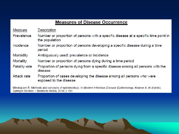 DISEASE EMERGENCE AND RE-EMERGENCE: CAUSES • GENETIC/BIOLOGIC FACTORS – Host and agent mutations – Increased survival of susceptibles • HUMAN BEHAVIOR – POLITICAL – SOCIAL – ECONOMIC • PHYSICAL ENVIRONMENTAL FACTORS – crowding • ECOLOGIC FACTORS – Climatic changes – Deforestation – Etc.