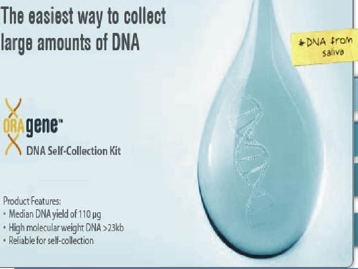 Dried Blood Spot Blood specimen is spotted onto clean slides or paper or cotton cloth. Transported and stored at room temperature Serves as a good source of high-molecularweight DNA A quantity of 50 ul of dried blood can provide 0. 5 ug DNA, sufficient for multiple PCR-based assays