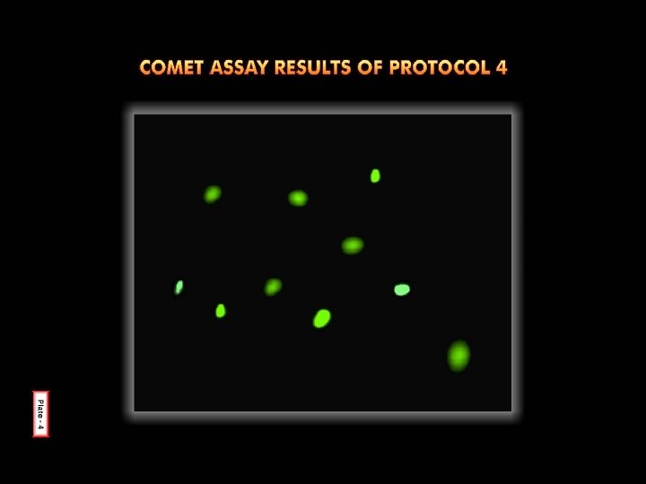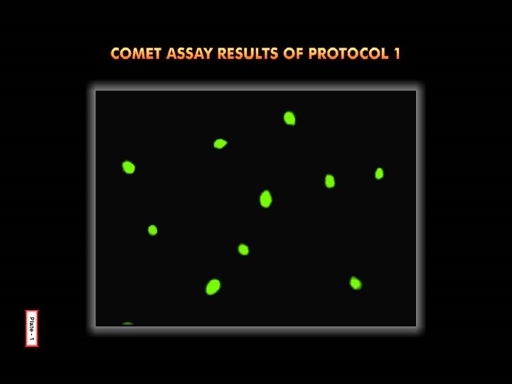 RESULTS § 4 different protocols followed which differed in § § Composition of buffers Duration and temperature of lysis Level of genotoxic insult Electrophoretic conditions § Each of the experiment done for at least 3 times and Protocol 2 – best results § ? Due to longer duration of lysis and high levels of ROS induction