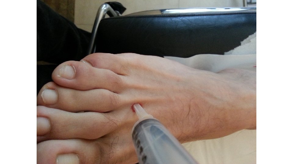Localisation : entre les deux têtes métatarsiennes Aiguille orange longue Dose 0, 5 ml à 1 ml Voie dorsale Position : genou fléchi, pied à plat sur la table