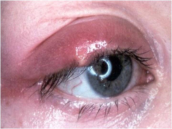 Orzuelo : Concepto: Inflamación aguda y circunscrita del borde libre del párpado, por una infección estafilocóccica de las glándulas de Zeiss y Moll ( EXTERNO) y cuando el absceso estafilocòccico afecta las glàndulas de meibomio es INTERNO Síntomas y signos: Aparece una tumefacción roja en el borde del párpado acompañada de dolor, rubor y edema del párpado, muy pronto se ve un punto amarillento que induce a la pronta supuración. Está asociada a la Blefaritis, mal estado general, Diabetes Mellitus y anemia.