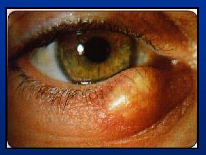 Tratamiento: n n Fomentos tibios tres veces al día por 10 minutos Ungüento antibiótico con masaje ocular Tetraciclina sistémica: en casos de chalazión recurrentes ( Rosácea y Dermatitis seborreica) Tratamiento Quirúrgico.