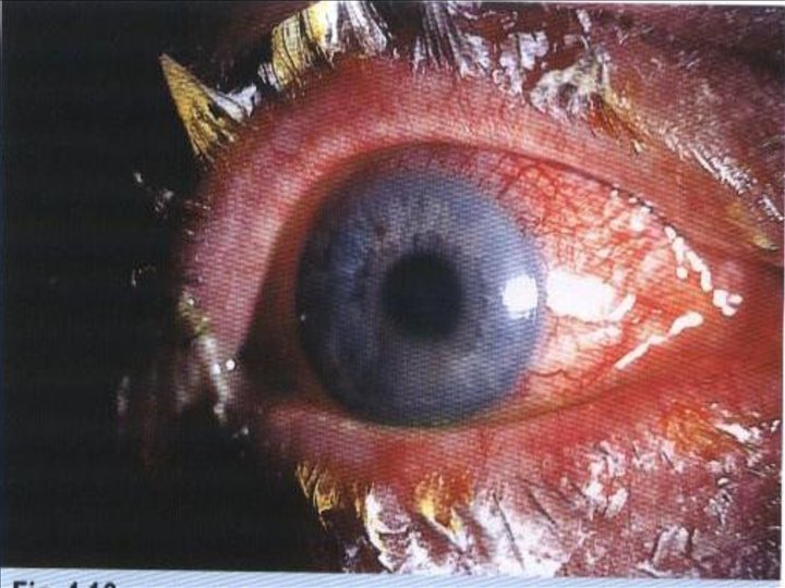 Tratamiento n n n Realizando un exudado conjuntival se puede aislar el germen causal. Higiene extrema. Fomentos frescos de agua hervida 3 ó 4 veces al día por 10 minutos. Lavados oculares, si secreciones Colirio antibiótico de amplio espectro cada 2 ò 4 horas.