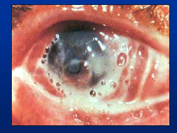 Diagnóstico : Clínico, tinción Gram. y microbiológico Tratamiento: ¡ REMISION URGENTE ! n n n Ingreso Lavados con agua hervida fresca cada 1 hora. Colirio antibiótico fortificado cada 1 hora. Penicilina Rapilenta (2 y ½ millones IM en cada región glútea, precedidos por 1 gramo de Probenecid (500 mg), treinta min antes ò Ceftriaxone (1 g) IM dosis única