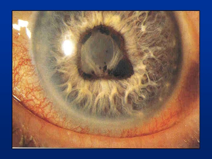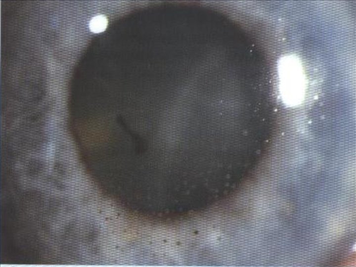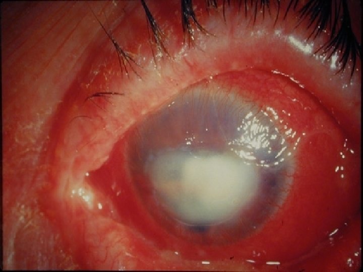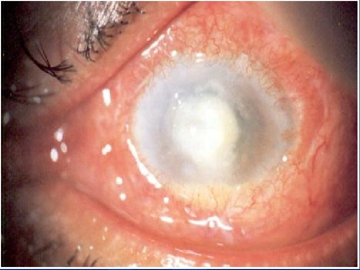 Queratitis microbiana: Concepto: Pérdida de sustancia de la córnea con una infección sobreañadida. Etiologìa : Bacteriana , Viral , Micótica ò Parasitaria. Síntomas : Signos: Dolor. Hiperemia ciliar Lagrimeo. Secreciones oculares Fotofobia Opacidades corneales, que tiñen con Blefarospasmo fluoresceína Disminución de la AV Difracción 1 ra imagen de purkinje. Hipopiòn