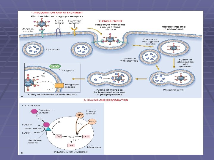 3. Killing and Degradation. § The final step is killing and degradation within neutrophils and macrophages. § Microbial killing is accomplished largely by reactive oxygen species and reactive nitrogen species, mainly derived from NO.