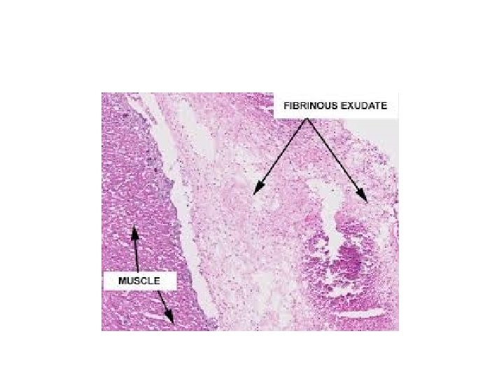 FIBRINOUS INFLAMMATION • INCREASED PERMEABILITY. . . EXUDATION OF FLUID AND LARGE MOLECULES SUCH AS FIBRINOGEN. • FIBRIN FORMED AND DEPOSITED IN EXTRACELLULAR SPACES.
