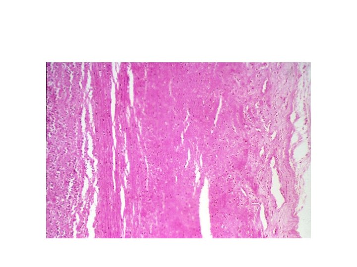 SUPPURATIVE INFLAMMATION • PUS = NEUTROPHILS, NECROTIC DEBRIS, FLUID. • CAUSED BY BACTERIAL INFECTION.