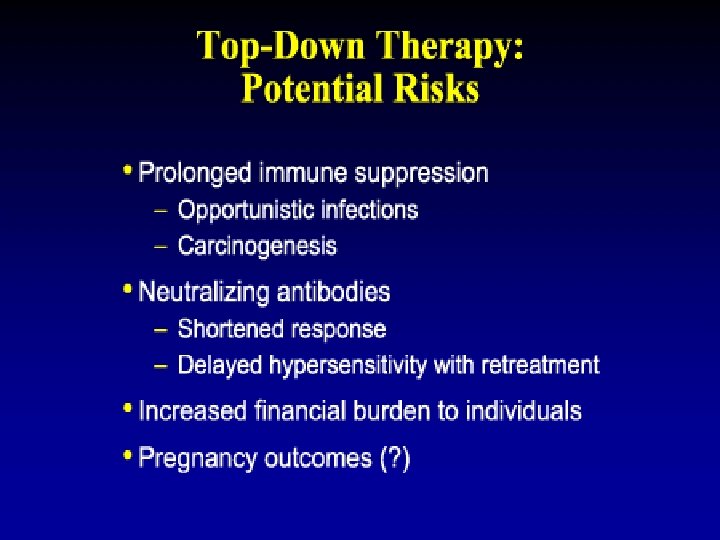 Continuous Immunotherapy is required to treat a Chronic Disease Patients in clinical remission with AZA for at least 3. 5 years before randomisation Months after randomisation Lemann et al. Gastroenterol. 2005 Jun; 128(7): 1812 -8.