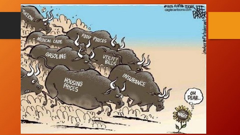 Calculate Wages with inflation • Real Wage = Nominal Wage in that Year/CPI in that year X 100 Real earnings in 1980: $269/week / CPI of 86. 3 X 100 = $312 Real earnings in 2010: $751/week/ CPI of 219. 2 X 100 = $343