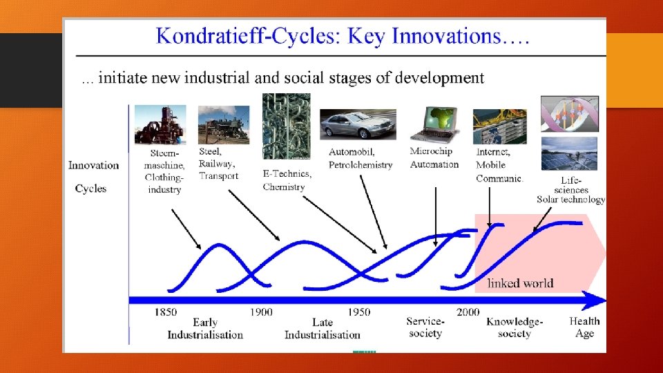 Kondratieff Wave • Theory of Cycle of business cycles: pattern of 50 -60 yrs • Cycle of prosperity preceded by population increases (includes immigration) • Leads to high demand • Producers can’t keep up with demands • High inflation • High credit use • Each cycle grows better with higher and higher inflation • Inflation devalues the dollar • Government is overturned • Downward part of cycle • Poverty and depression