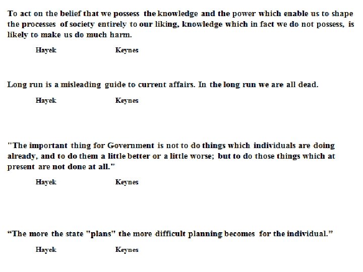 Create Haikus- 3 lines 5 -7 -5 3 for Hayek and 3 for Keynes Each Haiku should have identifying concepts, make them informative but don’t include the person’s name. Please email me the haikus prior to the end of class and I will create a power point of some of the best Haikus. They will be used tomorrow as a review. The following are a couple of good examples.