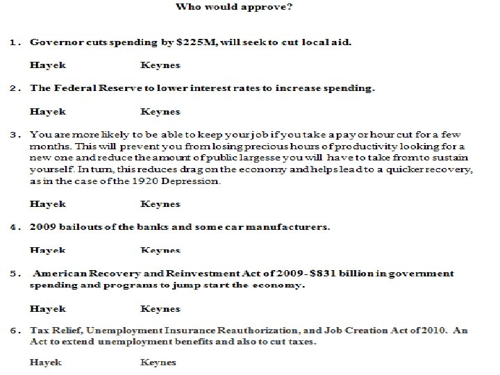Topic Why are there Economic downturns? LRAS Solutions to Recession? How should the government carry out its economic role to accomplish the goals of full employments, increased production, and stable prices? Keynes Hayek
