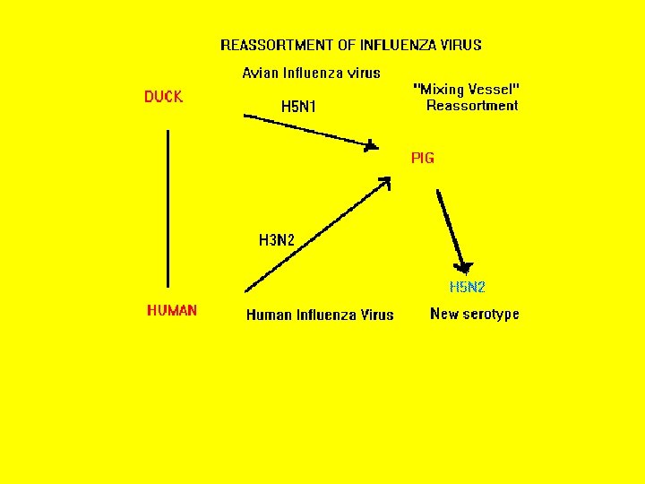 Antigenic Shift • This term denotes MAJOR changes in hemagglutinin and neuraminidase resulting from reassortment of gene segments involving two different influenza viruses. • When this occurs, worldwide epidemics may be the consequence since the entire population is susceptible to the virus.