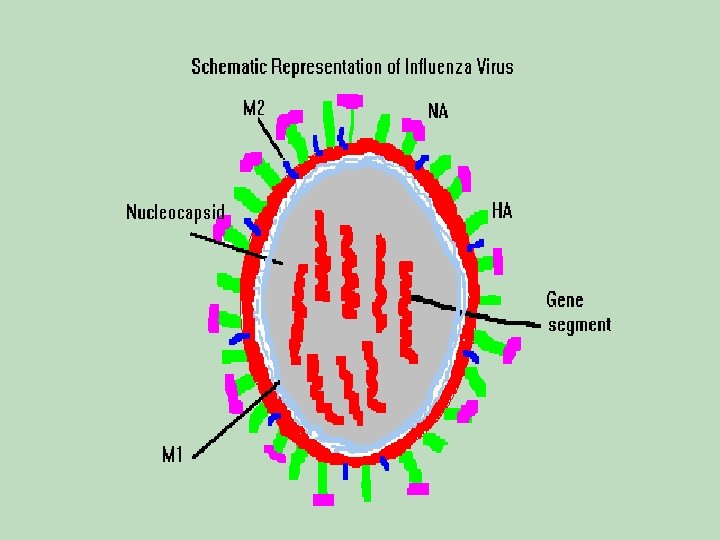 Classification of Influenza virus • Classified on the basis of hemagglutinin (HA) and neuraminidase (NA) • 15 subtypes of HA and 9 subtypes of NA are known to exist in animals (HA 1 -15, NA 1 -9) • 3 subtypes of HA (1 -3) and 2 subtypes of NA (1 -2) are human influenza viruses. HA 5, 7, 9 and NA 7 can also infect humans