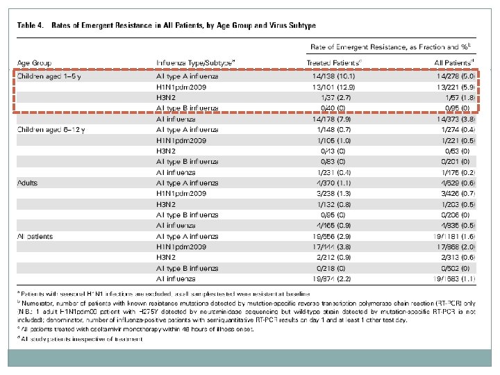 Tratamento com Inibidores da Neuraminidase para Influenza A pandêmica H 1 N 1 sazonal: <1% de resistência em 2006 - 2007 para >95% em 2008 -2009 Não parece ser pressão seletiva Disseminação de mutação S 31 N no gene M 2 H 1 N 1 pdm 09 tem referido 5% de resistência pela mutação H 275 y Wathen M et al. Influenza and Other Resp Viruses 2012: 7(1): 76 -80