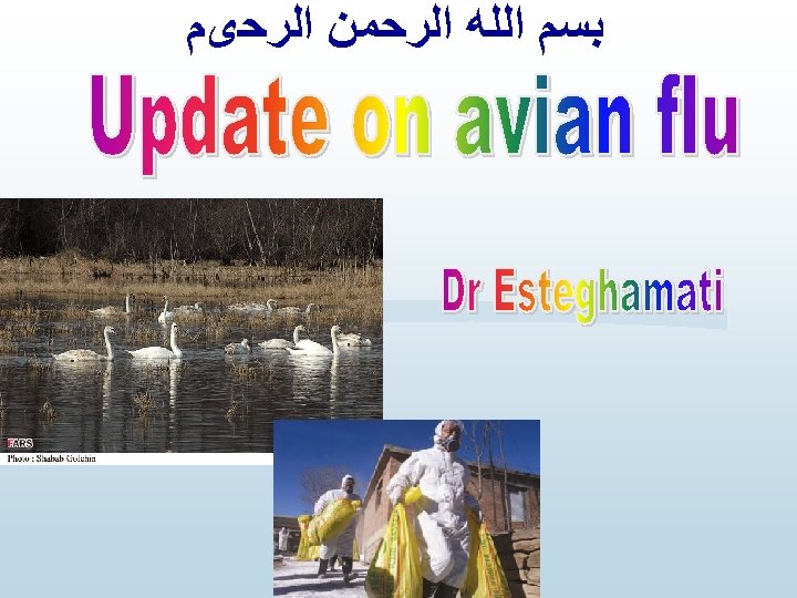 New role of migratory birds first observed in 2005, • Some species of migratory birds have acquired an ability to carry the H 5 N 1 virus in its highly pathogenic form over long distances. • Partly responsible for the dramatic recent spread of the virus to new areas. • The involvement of migratory birds in the epidemiology of this disease • • • increases the likelihood of further spread the complexity of control measures in animals, elimination of the virus in wild birds is considered impossible. ﻣﺮکﺰ ﻣﺪیﺮیﺖ ﺑیﻤﺎﺭیﻬﺎ ﺍﺩﺍﺭﻩ ﺑیﻤﺎﺭیﻬﺎی ﻗﺎﺑﻞ پیﺸگیﺮی ﺑﺎ ﻭﺍکﺴﻦ ﻭﺍﺣﺪ آﻨﻔﻠﻮآﻨﺰﺍ