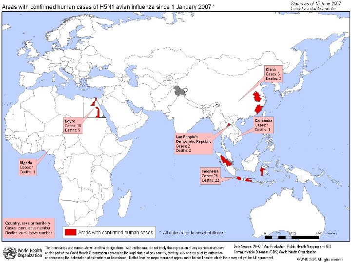 The fastest and most extensive geographical spread • The fastest and most extensive geographical spread since the disease was first described in 1878. • Poultry in some of the world’s most densely populated areas poorly served by systems for health care and disease surveillance. • This situation increases the likelihood that human cases may not be detected promptly or at all. ﻣﺮکﺰ ﻣﺪیﺮیﺖ ﺑیﻤﺎﺭیﻬﺎ ﺍﺩﺍﺭﻩ ﺑیﻤﺎﺭیﻬﺎی ﻗﺎﺑﻞ پیﺸگیﺮی ﺑﺎ ﻭﺍکﺴﻦ ﻭﺍﺣﺪ آﻨﻔﻠﻮآﻨﺰﺍ