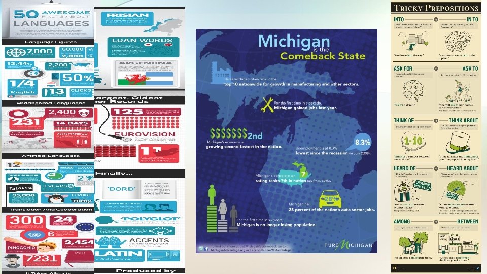 Why are Infographics Relevant NOW? • Marketing • Internet • Informational materials (brochures, flyers, posters, etc. ) • Textbooks • Resource / Reference materials • Standardized Exams – IELTS (writing prompt 1)