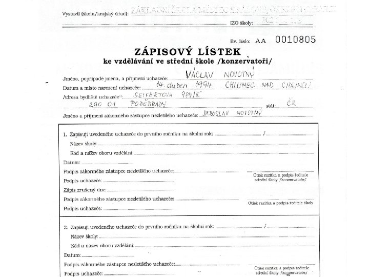 Zápisový lístek • • • Vydává a potvrzuje škola Žák má nárok na jeden lístek Pro obory s TZ: do konce listopadu 2020 Ostatní: 4. únor 2021, 4. březen 2021 Uchazeč ho s vyplněným názvem SŠ předloží do 10 pracovních dnů po zveřejnění rozhodnutí o přijetí • Jednou ho lze vzít zpět, a to v případě odvolávání se či uměleckého oboru