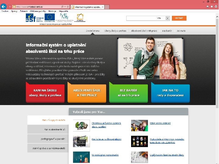 Zdroje informací při výběru SŠ: • • • www. infoabsolvent. cz http: //www. atlasskolstvi. cz http: //mpsv. cz/brána do internetu/ www. cermat. cz (přijímačky) webové stránky příslušných středních škol propagační materiály poskytnuté naší škole, atlasy školství