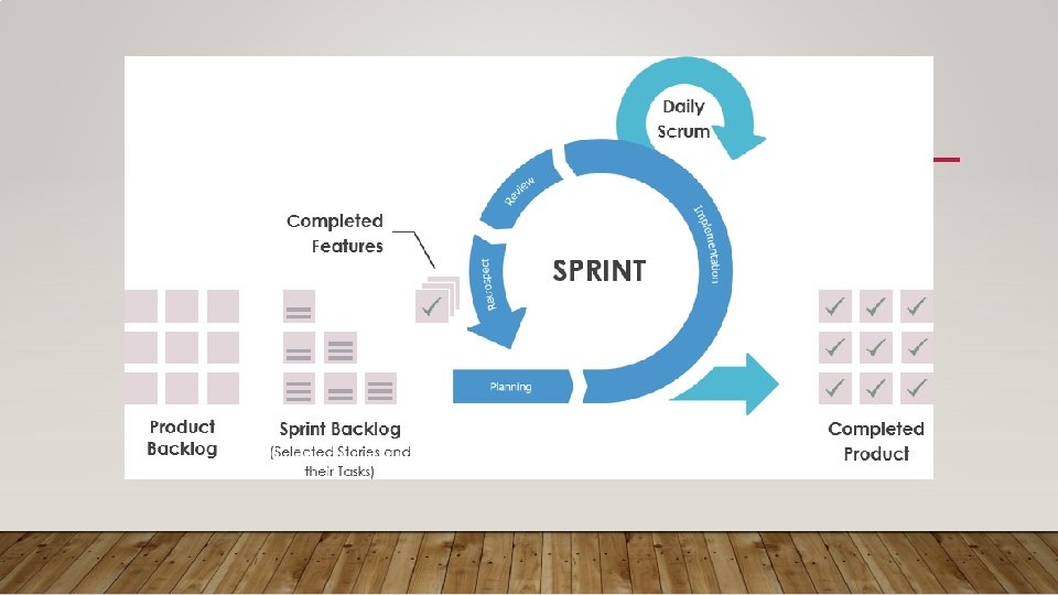• Společná aktivita celého týmu. • Výběr položek: PO – SM – Team. • 2 základní otázky: PLÁNOVÁNÍ SPRINTU 1. Jaká práce se vytvoří? 2. Jak bude práce označena za hotovou? • Stavy tasků: • Nevyřízen (To. Do) • Probíhá (In Progress) • Hotovo (Done) • Po dokončení sprintu probíhá předvedení výsledků zúčastněným. • Předem určená doba sprintu – např. týden.