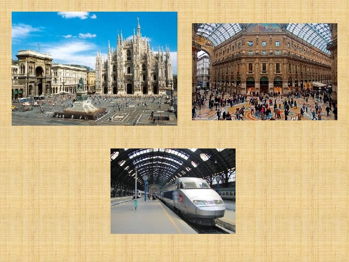 • Milano: este capitala regiunii Lombardia și a provinciei Milanului. Orașul propriu-zis deține o populație de aproximativ 1, 3 milioane locuitori, în timp ce zona urbană este a-IV-a ca mărime în Uniunea Europeană cu o populație estimată la 4, 3 milioane locuitori. Zona metropolitană a Milanului, de departe cea mai mare din Italia, deține o populație estimată la 7, 4 milioane locuitori. Milano este pe lângă Roma, capitala afacerilor, a modei, a finanțelor, a media și a industriei în Italia. Orașul propriu-zis este al al doilea cel mai bogat oraș din Italia, cu un PIB de 115 miliarde de dolari, în timp ce zona metropolitană deține un PIB de 241, 2 miliarde euro în 2004 ce ocupă locul 4 în Europa, ceea ce înseamnă că, dacă Milano ar fi o țară, ar ocupa locul 28 ca fiind cea mai bogată țară din lume, apropiată ca mărime de economia Austriei. Milano este de asemenea o mare capitală a modei , anual concurând cu alte centre cum ar fi Paris, New York City, Londra, Los Angeles și Tokyo. Orașul a găzduit de asemenea Expoziția Mondială din 1906 și va găzdui Expoziția Universală din 2015 și în prezent expoziția Fiera. Milano considerată cea mai mare din Europa.