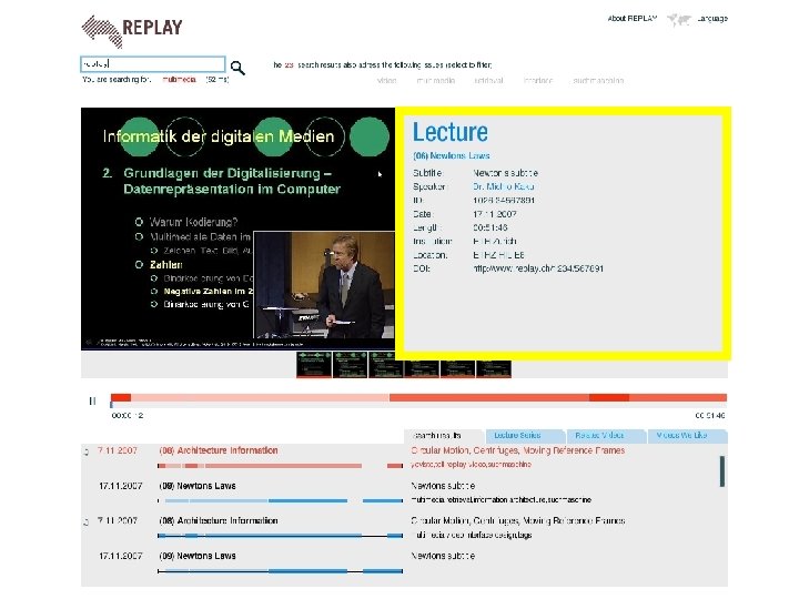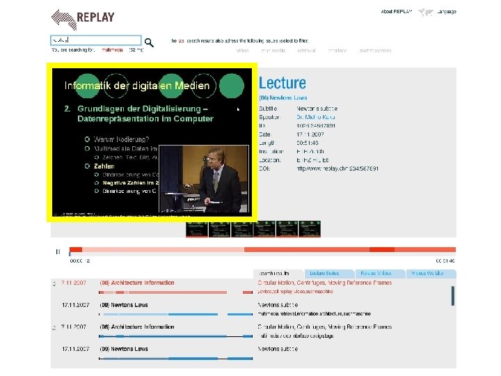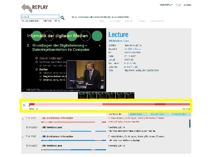 REPLAY – User Interface Multimedia Services: REPLAY • Collective • Interactive • Enrichment From audiovisual content to multimedia learning object October 2008: Olaf A. Schulte, Multimedia Services, ETH Zurich