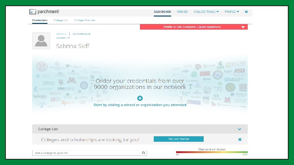 STEP FOUR: Request your transcript through Parchment. • Parchment is an online service that sends your transcript directly to the college/university you applied to. Parchment accounts will be set up through your English class. If you missed the appropriate time to set up your Parchment account, please see your counselor ASAP. • Once you have submitted your entire application, go onto www. parchment. com. Go to order and choose the college you wish to have your transcript sent. Your counselor should approve your request in 3 days. You can log into your account and see that it has been sent as well as when the college downloaded your transcript. • AGAIN, be sure to let your counselor know if you need a recommendation with your application. • PLEASE KEEP TRACK OF ALL SCHOLARSHIP MONEY YOU HAVE BEEN OFFERED. CREATE AN EMAIL FOLDER JUST FOR THAT INFORMATION.