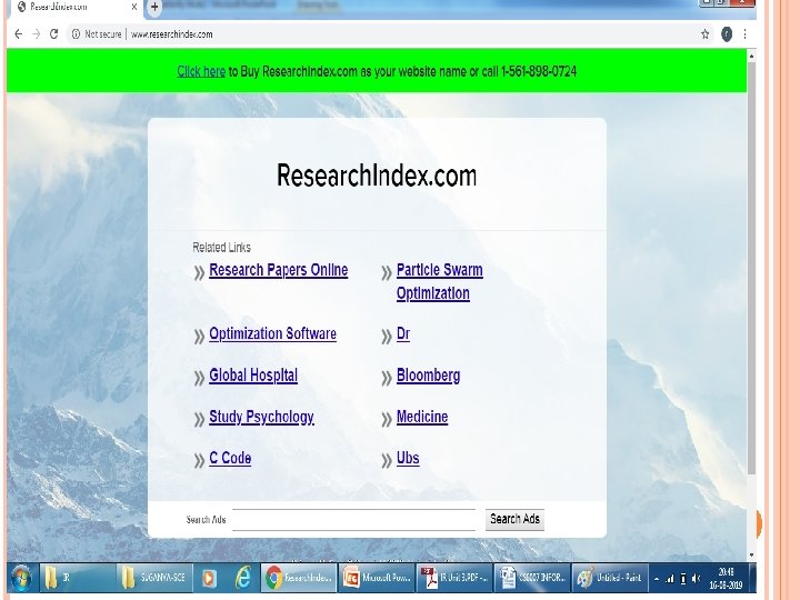 Searching Guidelines Specify the words clearly, page title, date, and country If looking for a company, institution, or organization, try to guess the URL by using the www prefix followed by the name, and then (. com, . edu, . org, . gov, or country code). Use www. researchindex. com to search research papers. Ex: IEEE explore For broad queries : Web directories