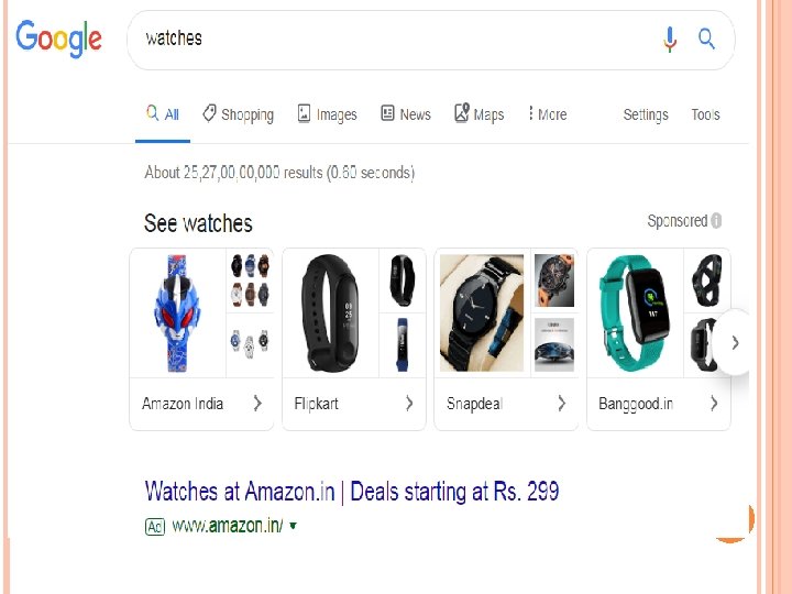 ORGANIC SEARCH VS PAID SEARCH the list of links that appear below the ads are known as "organic results. “ Paid search accounts are those that companies have paid to appear the top of search results