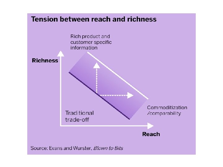 Reachness vs. Richness • The reach of information is defined as ‘the number of people who participate in the sharing of that information’. • The richness vs. reach concept means that the richer the information is the less reach it has and vice versa. • Internet overcomes the trade-off between reachness and richness