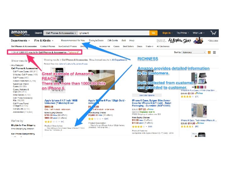 Amazon - richness • • • Reviews and exchanges with other readers Personal recommendations Customized login screen Communication Interviews and exchanges with authors
