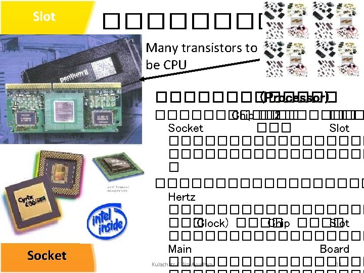 Chip ������ • Intel ; 8088 , 80386 , Pentium mmx , III, IV , Dual core Celeron , Core 2 Duo , Atom • AMD ; K-serie Athlon , Duron Xilleon , Quad core • Cyrix (VIA); 486, 586, 686 , MIII Kulachatr C. Na Ayudhya 14