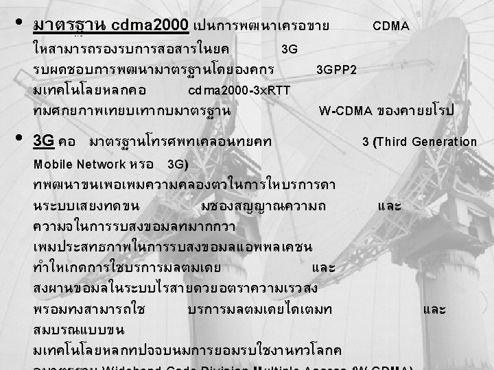 Telecommunication Channel Wireless Communications : Microwave – Microwave for remote distance : island , forest, Hill-tribe kulachatr C. Na Ayudhya 39