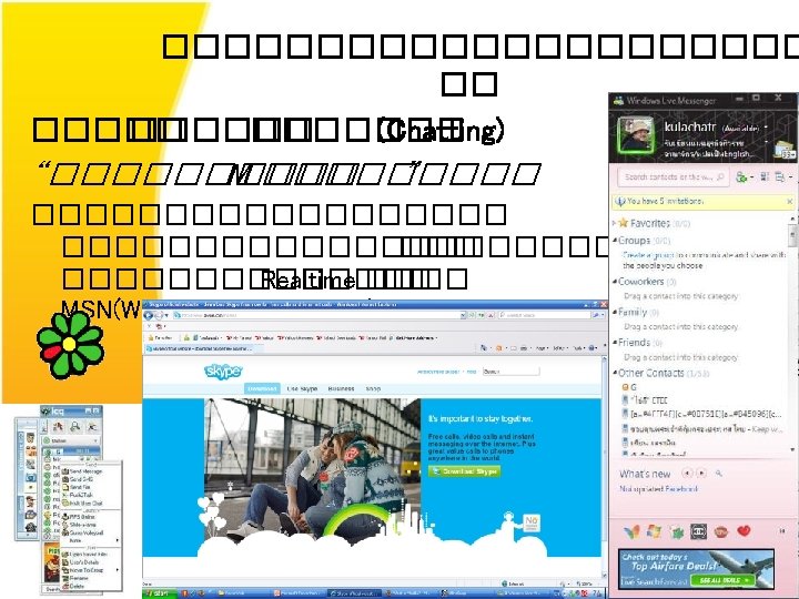 Telecommunication Channel Wireless communications • • • ������ (Microwave) ������ (Satellite System) ������ (Bluetooth) ����� (Wireless LAN - Wi. Fi) ������� (Cellular System) – AMPS , TAC , NMT , GSM , CDMA , 3 G • Edge/GPRS • Wi. MAX kulachatr C. Na Ayudhya 37