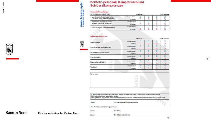 1 1 11 Kanton Bern Erziehungsdirektion des Kantons Bern / Amt für Kindergarten, Volksschule und Beratung