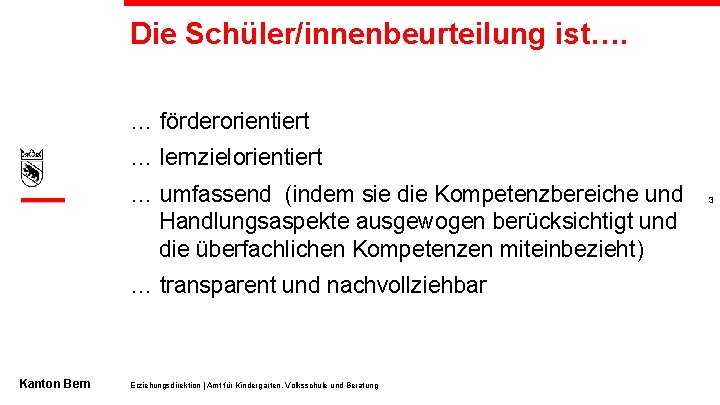 Förderorientierte Beurteilung 4 Kanton Bern Erziehungsdirektion | Amt für Kindergarten, Volksschule und Beratung