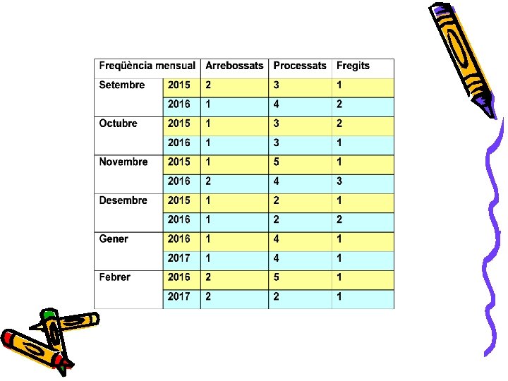 Objectius 1 r OBJECTIU GENERAL Detectar els punts forts i els punts febles en el servei de monitoratge. OBJECTIUS ESPECÍFICS -valorar la qualitat de la comunicació menjador-famílies (percepció informació complerta, incomplerta). -valorar la tipologia del suport emprat (analògic i/o telemàtic). -valorar la periodicitat en les comunicacions menjadorfamílies (setmanal, mensual, trimestral). -valorar la qualitat del temps d’esbarjo. -valorar els recursos pedagògics del monitoratge en el tracte diari amb l’infant.