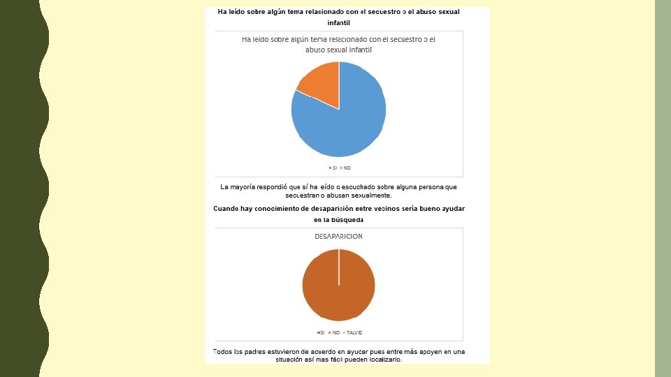 El resultado de mi investigación, es que necesitamos que en las comunidades mas pequeñas se fomenten medidas de prevención tanto para los niños y niñas como a los padres de familia para que sepan que hacer en caso de una situación de secuestro o abuso sexual infantil. Aprendí mucho de este tema y abarca muchísimos problemas cotidianos y espero seguir investigando para poder ayudar a mi comunidad y seguir desarrollando nuevos conocimientos para estudiar esta carrera en línea que es Seguridad Publica.