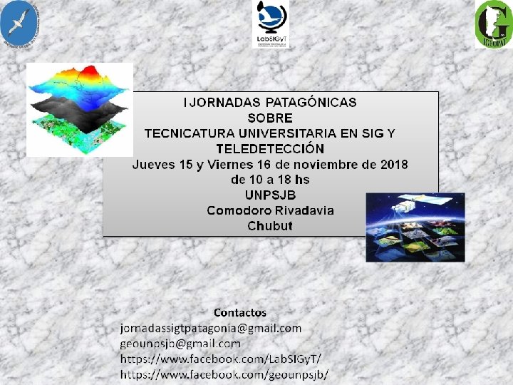 Antecedentes 2015 – Adhesión a IDERA – UNPSJB 2015 – Congreso SIG – Santiago Linares y Natasha Picone (UNICEN) 2015 – 2016 Cursos de capacitación a cargo de Marcelo Sosa 2016 – Osvaldo Cardozo (UNNE) Transporte y redes, análisis por grafos 2016 – Marina Miraglia (UNGS) 2017 – Carlos Giménez (UNGS) 2017 – Viaje a IGN – Encuentro + STATE OF THE MAP Argentina 2017 FOSS 4 G 2017 - Creación del Laboratorio en SIG y Teledetección 2017 – Diseño de la IDE_UNPSJB 2018 – Presentación al Rector y secretarios de UNPSJB y de FHCS 2018 – Dos tesis de Licenciatura en Geografía en proceso 2018 – Convenio con la localidad de Sarmiento (Chubut) Desarrollo de IDE_ Sarmiento Compromiso de adhesión a IDERA