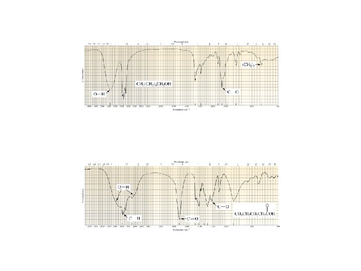 Infrared Absorption Frequencies Structural unit Frequency, cm-1 Stretching vibrations (single bonds) sp C—H 3310 -3320 sp 2 C—H 3000 -3100 sp 3 C—H 2850 -2950 sp 2 C—O 1200 sp 3 C—O 1025 -1200