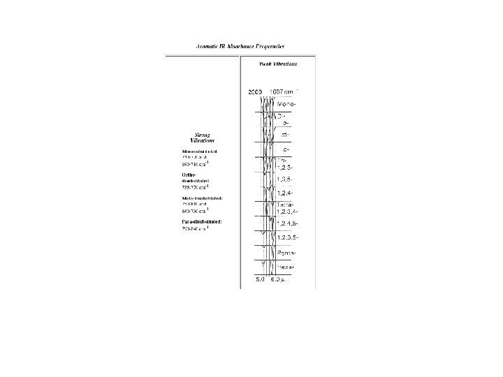Aromatic Absorption Frequencies Structural unit Frequency, cm-1 Bending vibrations of derivatives of benzene Monosubstituted 730 -770 and 690 -710 Ortho-disubstituted 735 -770 Meta-disubstituted 750 -810 and 680 -730 Para-disubstituted 790 -840