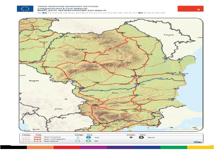 Situația actuală • Consiliile Județene au în administrare un număr de 35. 424 km drumuri județene. • în perioada 2007 -2014 s-au investit o suma de peste 3 mld. euro (reparații, întreținere, mentenanță, dezăpeziri, cofinanțare fonduri UE – 2, 275 mil. euro și 780 milioane euro POR). • din totalul menționat, 22. 993 km. asigură conectivitatea directă sau indirectă cu rețeaua TEN T. • La nivelul regiunilor au fost prioritizați 8. 368 de km.